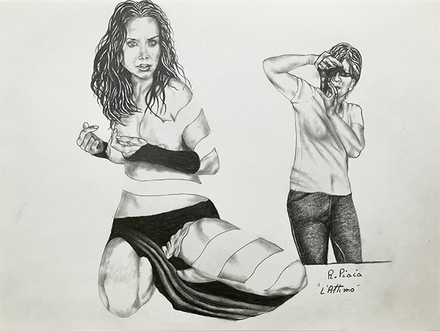 Kunst- Comics: in der Regel präsentiert sich ein Kunstkatalog als Sammlung pompöser Bilder und mit Texten von Kritikern. Ergebnis: So interessant diese auch sind, sie sind fast immer langweilig. Deshalb entstand die Idee sie „aufzuhellen“. Die Blätter, angereichert mit den Bildern von Statuen, Gemälden und Zeichnungen von Roberto Piaia, werden von einer surrealen Geschichte begleitet, die von Carmen De Guarda geschrieben wurde.